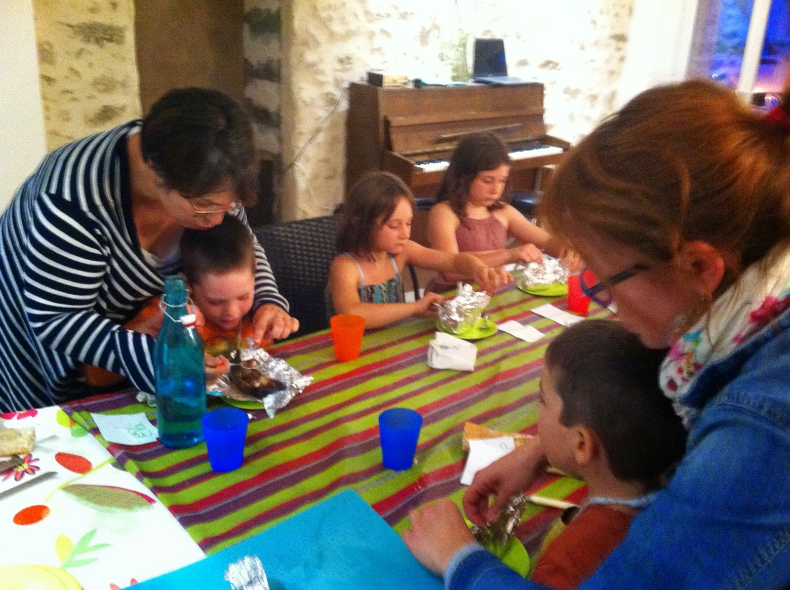 Août, partir en camp. Nous voilà repartis avec des ados de 15-17 ans, à faire les repas pour 75 personnes pendant 15 jours. Camper avec 12 degrés le matin, remplir trois caddies quotidiens au leclerc du coin, remuer des marmites avec 25 kilos de pommes de terre, couper 10 pains par repas, nettoyer des plats ayant pris au fond avec un tuyau d'arrosage, javelliser tout une fois par jour... Mais surtout, ce fut l'occasion de rencontrer de belles personnes, aux histoires tellement différentes. Ecoute, fous rires, gestion de crise, comptabilité, re-fous rires ! Et échanger avec les ados, une vraie richesse. Que de questions, de rêves, de peurs, d'envies ! Un moment d'émotion a été pour nous, lorsqu'ils nous ont fait la surprise de nous fêter nos 13 ans de mariage !